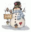 Opis sadržaja: a snowman wearing a scarf and hat is holding a sign and a house .