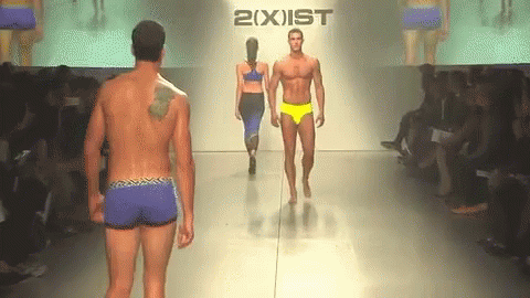 Opis sadržaja: a man and a woman are walking down a runway at a fashion show sponsored by 2xist