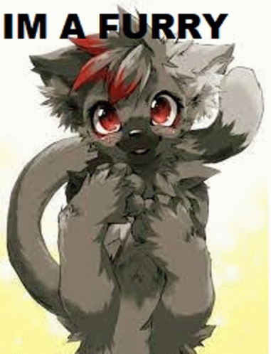 Opis sadržaja: a furry anime character with red hair and the words `` im a furry '' written on it .