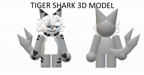 Opis sadržaja: a 3d model of a tiger shark is shown from the front and back