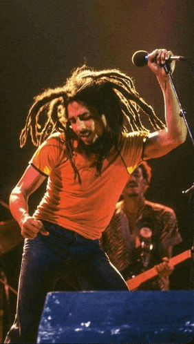 Opis sadržaja: a man with dreadlocks sings into a microphone while another man plays a guitar