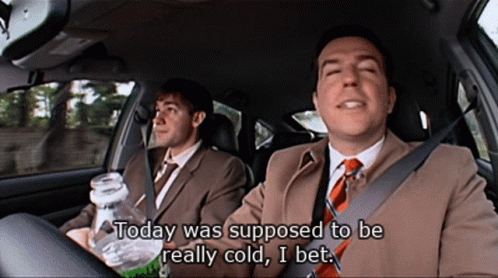 Opis sadržaja: two men in suits and ties are in a car and one of them is saying today was supposed to be really cold i bet