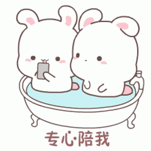 Opis sadržaja: two rabbits are sitting in a bathtub and one is holding a cell phone