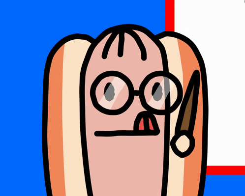 Opis sadržaja: a cartoon drawing of a hot dog with glasses