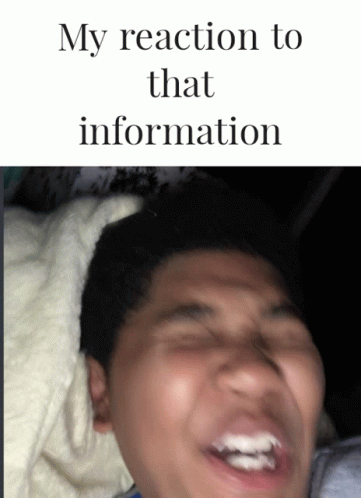 Opis sadržaja: a picture of a man with his mouth open and the words my reaction to that information