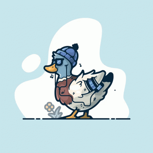 Opis sadržaja: a duck wearing a hat and scarf is standing next to a flower