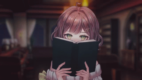 Opis sadržaja: a girl is covering her face with a book and smiling