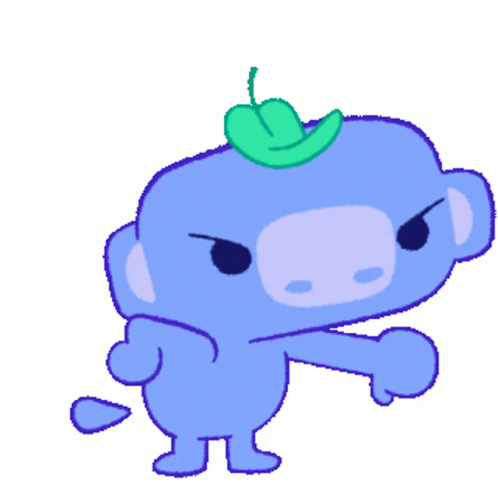 Opis sadržaja: a purple cartoon character with a green leaf on its head