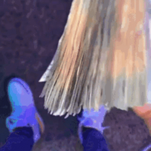Opis sadržaja: a close up of a person 's feet wearing blue boots and a long blonde haired doll .