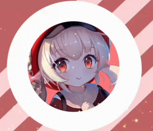 Opis sadržaja: a girl with red eyes is in a circle on a red and white background