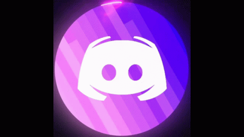 Opis sadržaja: a discord logo is displayed on a purple and pink striped background
