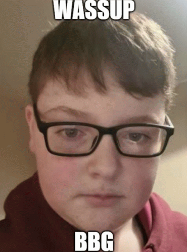 Opis sadržaja: a young boy wearing glasses with the words wassup bbc written on his face
