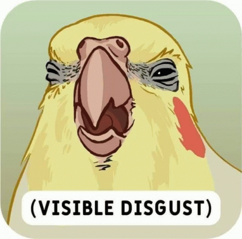 Opis sadržaja: a cartoon drawing of a bird with the words ( visible disgust ) underneath it
