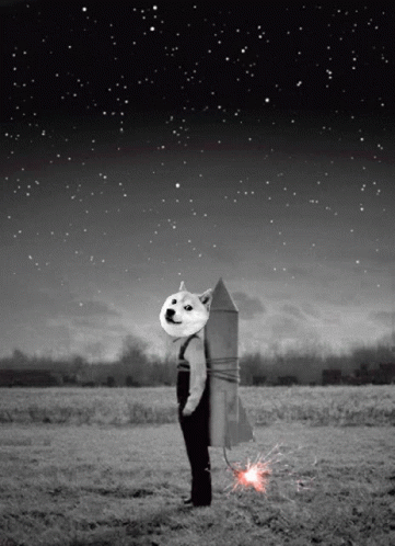 Opis sadržaja: a black and white photo of a dog wearing a rocket on its back