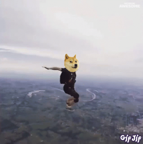 Opis sadržaja: a gif of a doge jumping in the air with the words gif jif below it
