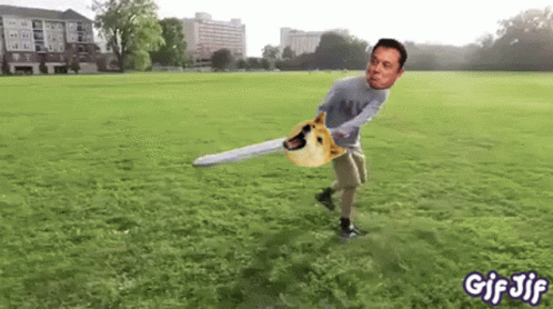 Opis sadržaja: a gif of a man holding a doge and a sword says gif jif