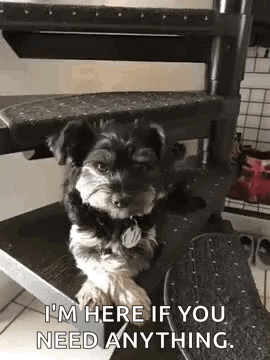 Opis sadržaja: a small black and white dog is sitting on a staircase and looking at the camera .