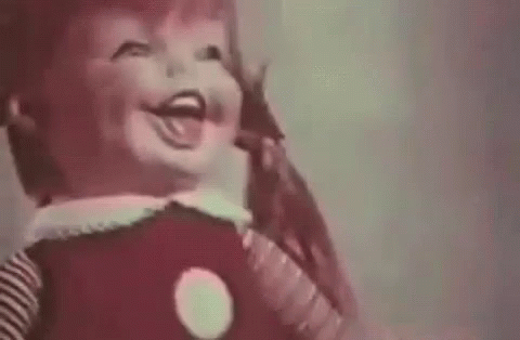 Opis sadržaja: a doll is laughing with her tongue out and wearing a striped dress .