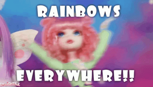 Opis sadržaja: a picture of a doll with the words rainbows everywhere on it