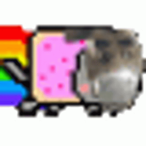 Opis sadržaja: a pixel art of a cat with a rainbow tail coming out of it .