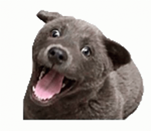 Opis sadržaja: a brown dog with its tongue hanging out is smiling and looking up at the camera .