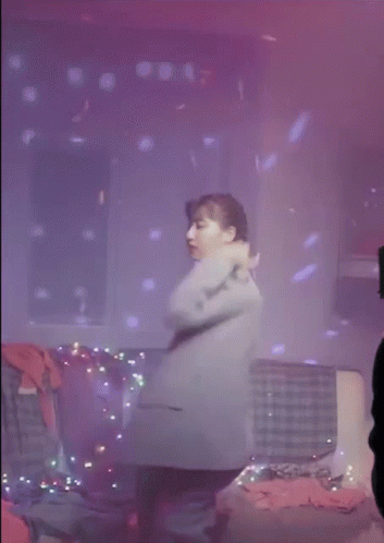 Opis sadržaja: a person is dancing in a dark room with purple lights behind them