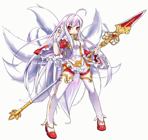 Opis sadržaja: a drawing of a girl holding a spear with a red stripe on it