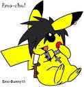 Opis sadržaja: a cartoon of a pikachu with a black haircut holding a knife .