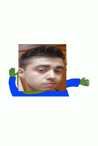Opis sadržaja: a drawing of a man 's face with a blue shirt and green hands