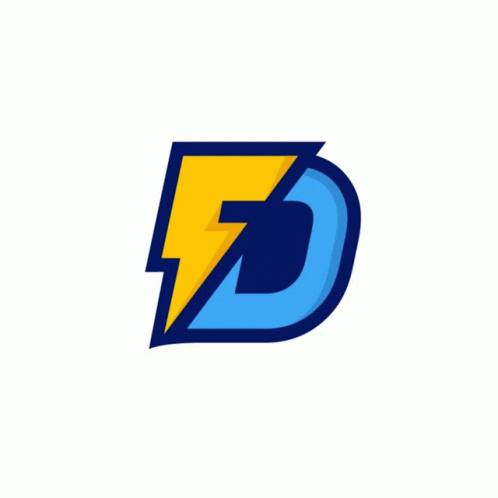 Opis sadržaja: a blue and yellow logo with the letter d and a lightning bolt on it