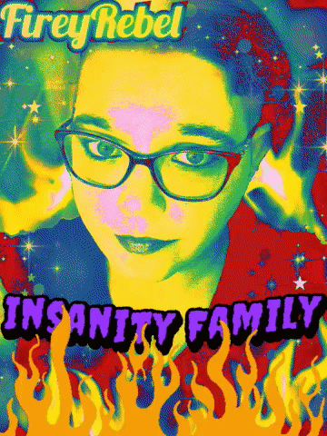 Opis sadržaja: a colorful poster for furey rebel shows a woman wearing glasses