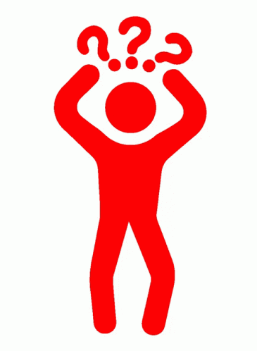 Opis sadržaja: a red silhouette of a person with three question marks on their head