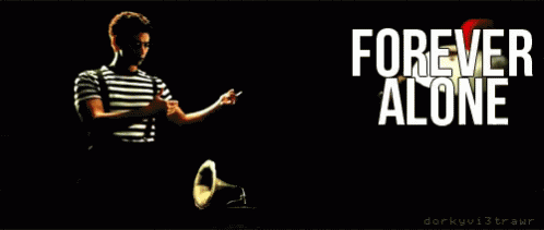 Opis sadržaja: a man in a striped shirt is pointing at something with the caption forever alone
