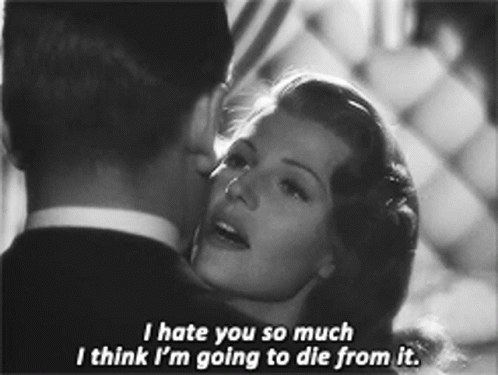 Opis sadržaja: a black and white photo of a man and woman with the caption i hate you so much i think i 'm going to die