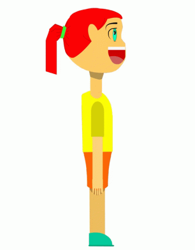 Opis sadržaja: a cartoon drawing of a girl with red hair wearing a yellow shirt and orange shorts