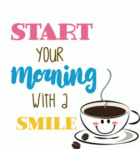 Opis sadržaja: a poster that says start your morning with a smile and a cup of coffee