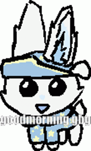 Opis sadržaja: a pixel art drawing of a rabbit wearing a hat and scarf
