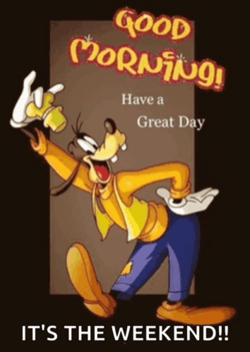 Opis sadržaja: a picture of goofy with the words good morning have a great day it 's the weekend
