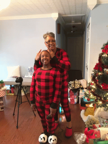 Opis sadržaja: a woman putting a hat on a child in matching pajamas