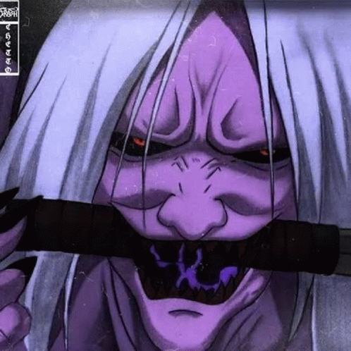 Opis sadržaja: a purple demon with a sword in its mouth is holding a stick .