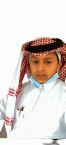 Opis sadržaja: a young boy wearing a white shirt and a red and white scarf