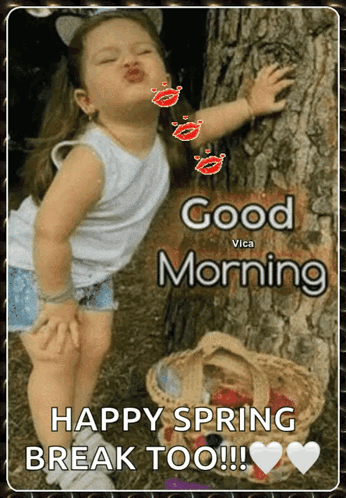 Opis sadržaja: a picture of a little girl kissing a tree says good morning