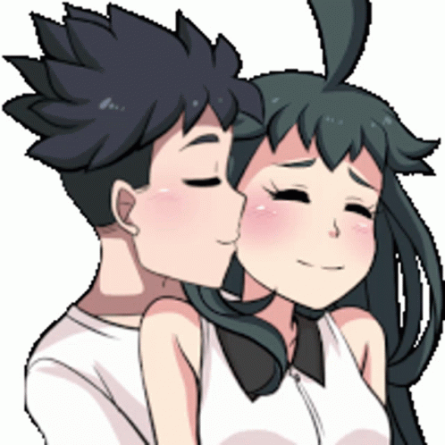Opis sadržaja: a pixel art drawing of a boy kissing a girl