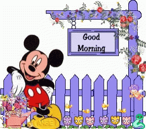 Opis sadržaja: a mickey mouse sign that says good morning on it