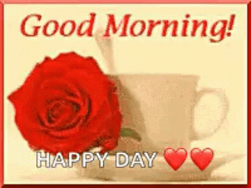 Opis sadržaja: a good morning card with a red rose and a cup of coffee