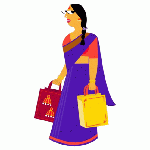 Opis sadržaja: a woman in a blue saree is carrying a yellow bag and a red bag