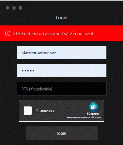 Opis sadržaja: a login page shows that 2fa is enabled on the account but 2fa is not sent