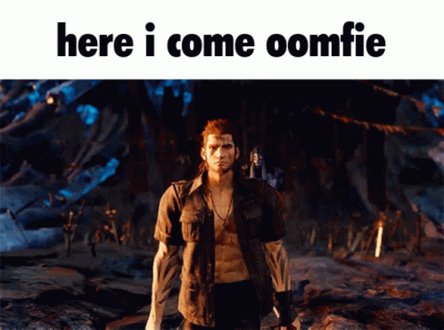 Opis sadržaja: a picture of a man with the words here i come oomfie on it