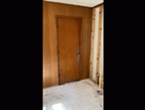 Opis sadržaja: an empty room with a wooden door and a yellow measuring stick .