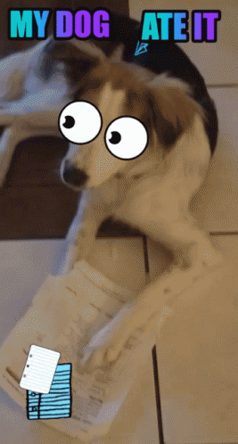 Opis sadržaja: a picture of a dog with big eyes and the words my dog ate it